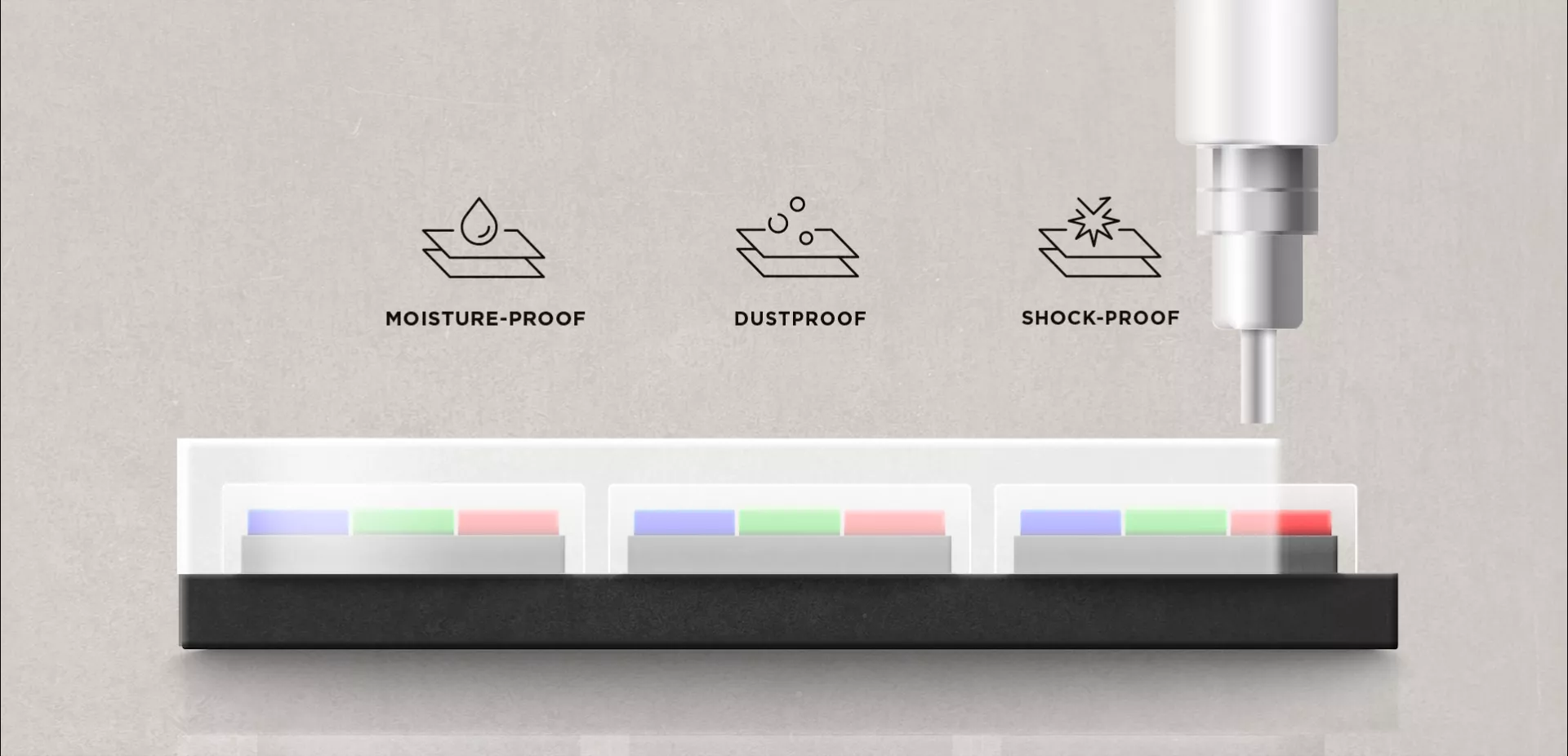 - Reliable performance in any space, enabled by GOB surface treatment and an IP54-rated, IK06-certified surface that protects against dust, moisture, and impact