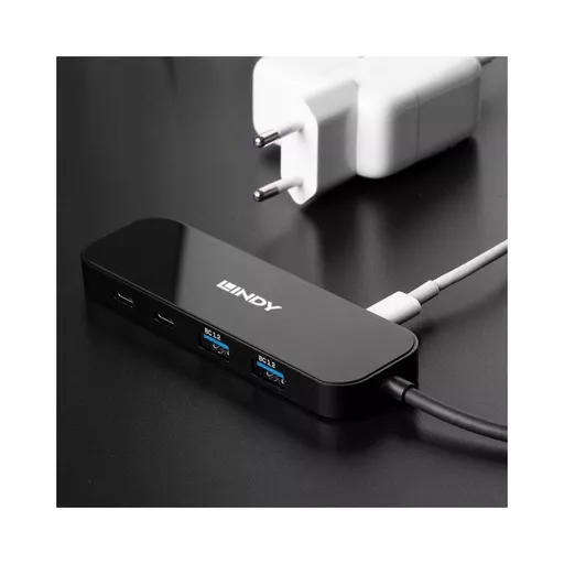 <p>The Lindy 4 Port USB 3.2 Gen 2 Type C Hub allows users to connect up to 2 USB Type A and 2 Type C peripherals to any USB Type C equipped devices. As part of the USB 3.2 Gen 2 specification, 10Gbps bandwidth provides lightning fast data transfers between host and mass storage devices.&nbsp;</p> <p>Featuring both Power Delivery 3.0 and Battery Charging 1.2, this Hub really is an ideal companion for power users looking to expand connectivity of Ultrabooks or Macbooks whilst charging their devices. PD 3.0 is provided using an extra USB Type C Port, supporting bidirectional power of up to 100W whilst enabling higher voltage and current values to negotiate between connected devices. Battery Charging 1.2 provides a level of charging which is not possible with standard USB Type A ports by supplying up to 1.5A.&nbsp;</p> <p>This device&rsquo;s tempered glass design, right angled host connection and small form factor combine to create a truly elegant hub which compliments high performance devices. Installation is simple using a reversible Type C connector and driverless installation.&nbsp;</p> <div>&nbsp;</div>