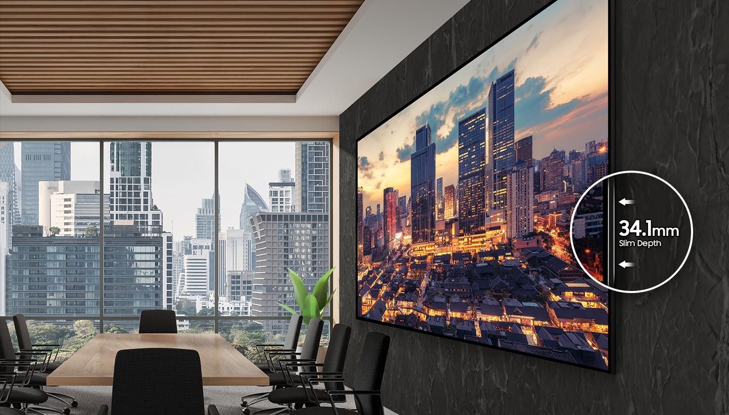 Despite its ultra-large 115-inch screen, the QHFX features an impressively slim profile at just 34.1mm. The refined depth enhances installation flexibility and elevates the overall aesthetic, making it perfect for modern environments where design matters as much as performance.