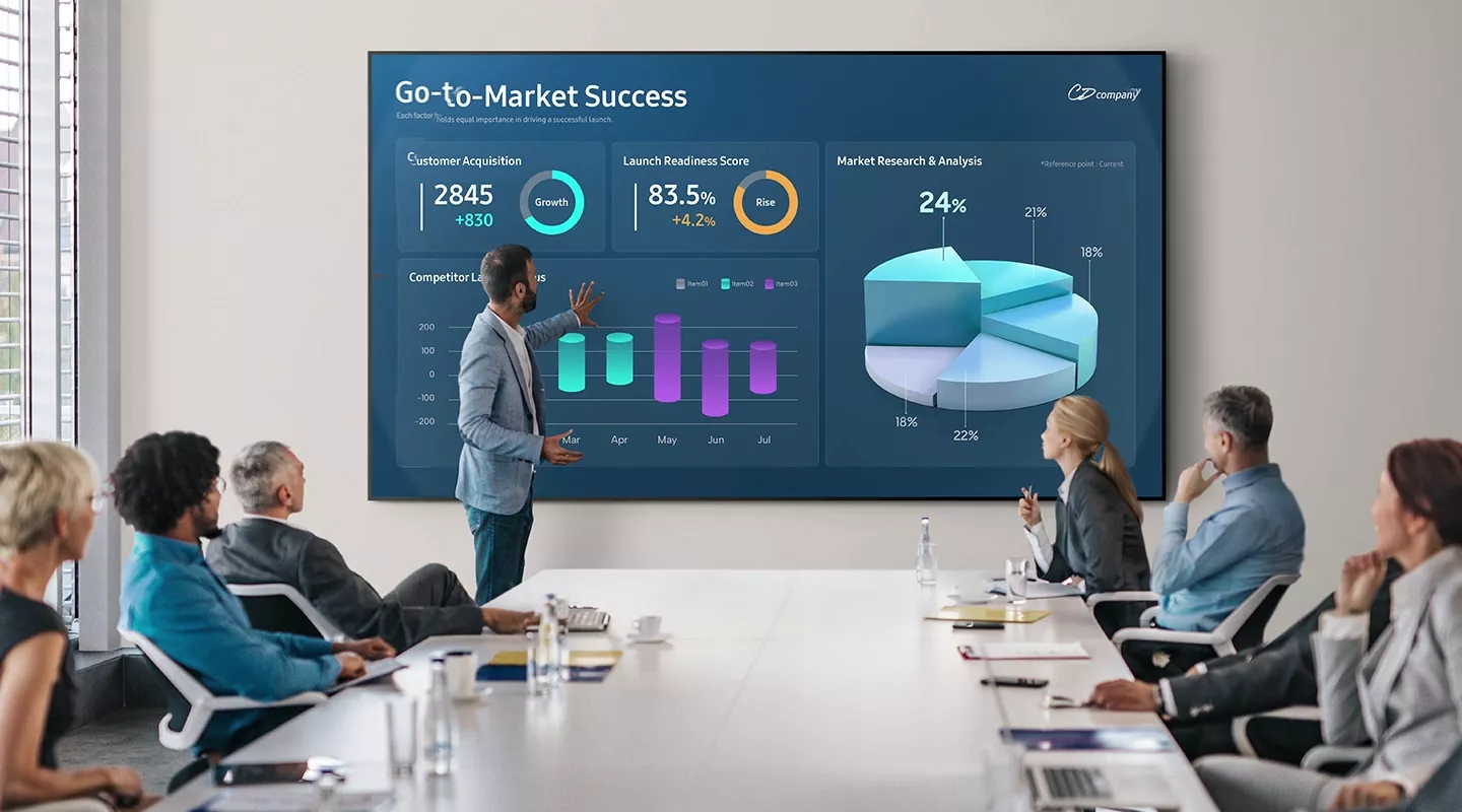 Samsung’s most advanced Quantum Mini LED Pro is precisely controlled by Quantum Matrix Technology Pro. At just 1/50 the size of conventional LEDs, it enables ultra-fine light control with enhanced detail and contrast across both dark and bright scenes—ideal for business environments where visual clarity is critical.
