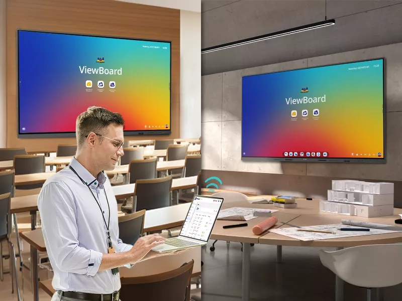 Enjoy expanded casting possibilities with the pre-installed vCast, allowing six-device simultaneous casting to the ViewBoard from desktop and mobile devices to the 110" display. Explore the versatility of split, extended, and grouped screen options, or effortlessly push lesson content to connected devices.