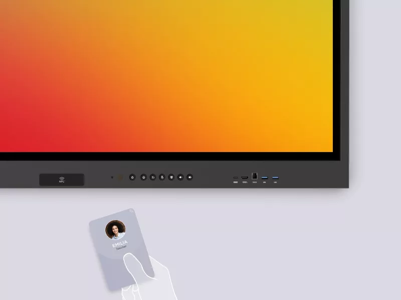 Unlock the ViewBoard with a swift tap of an NFC card, gaining instant access to your personalized settings and accounts, including myViewBoard, Google, and Microsoft, all secured from unauthorized users.​