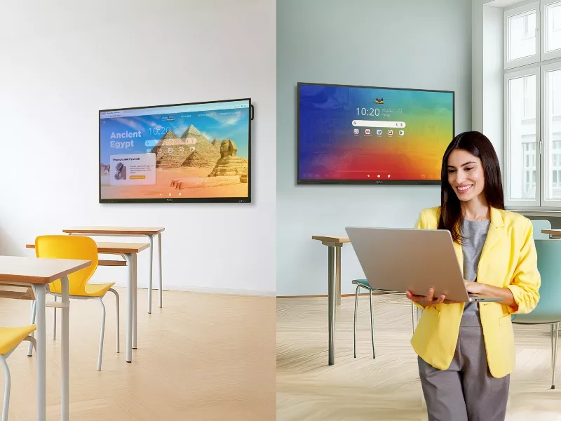 Experience fast, smooth, and reliable performance in every class with the ViewBoard® IFP35-1 Series. Available in 65", 75", and 86" models, it’s powered by an octa-core CPU with 128GB storage. EDLA-certified Android 16 ensures secure access to Google Play apps and a responsive system for effective teaching. Integrated ViewSonic Education Software includes tools for whiteboarding, wireless casting, and device management, helping teachers create interactive and engaging lessons while streamlining IT workflows. Built-in ambient light and motion sensors complete the experience, optimizing brightness, conserving energy, and extending panel life for smarter, more efficient classrooms.​