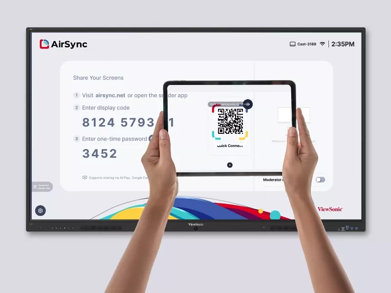 Enjoy fast, easy screen sharing with AirSync. Cast from up to 4 devices at once for collaborative learning and use Moderation Mode to control exactly what content appears in front of the classroom. With Touchback Control, teachers are free to roam the room, interact with students, and keep lessons dynamic.