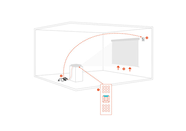 Ideal for a wireless operation without the need for a visible receiver, like IR remotes, especially for ceiling recessed screens. Also avoids any cross-communication between other IR devices.